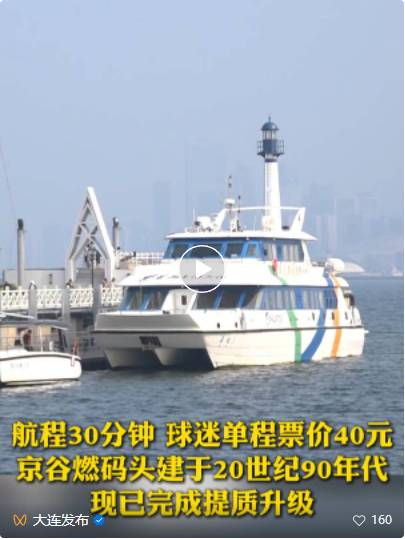 大連濱海旅游開(kāi)發(fā)管理有限公司董事長(zhǎng)趙文財(cái)介紹,這條水上“球迷專線”,船行30分鐘,可以搭載150人。