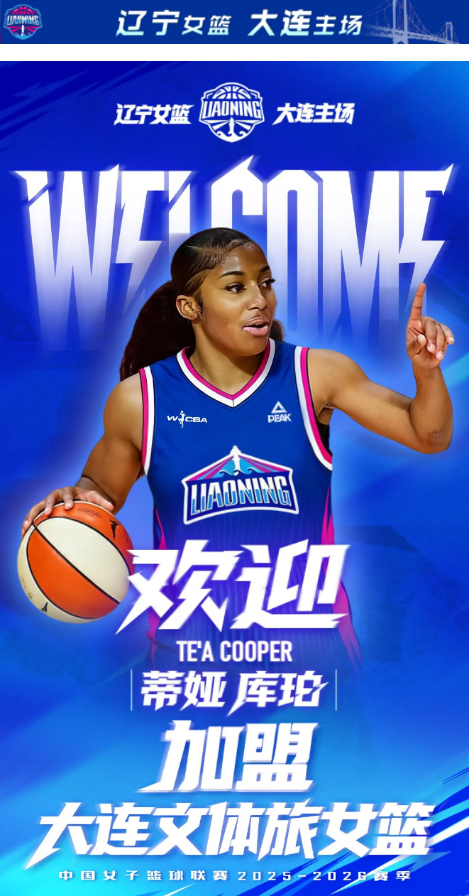 歡迎蒂婭 · 庫珀加入大連文體旅女籃大家庭!期待她在新賽季中充分發(fā)揮其技術與經(jīng)驗,幫助球隊在WCBA賽場上披荊斬棘,奏響更多勝利凱歌!