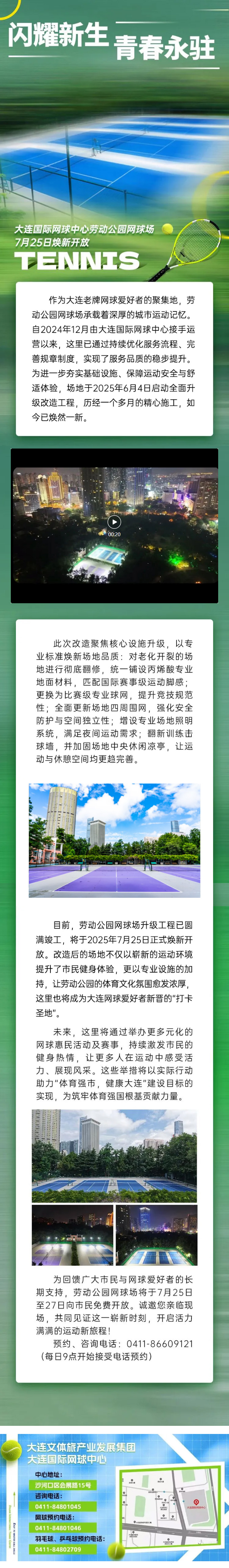 閃耀新生,青春永駐——大連國際網(wǎng)球中心勞動公園網(wǎng)球場7月25日煥新開放