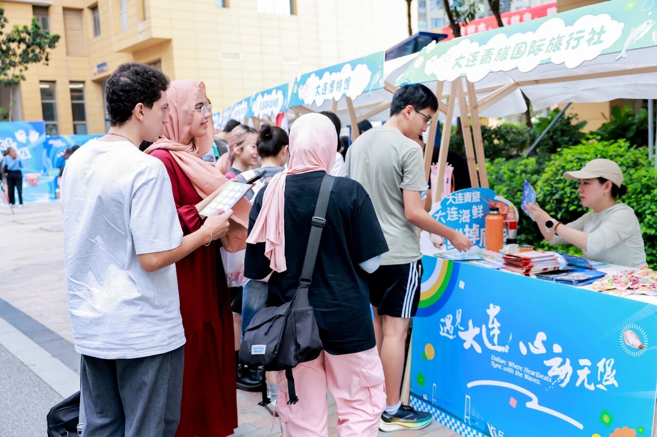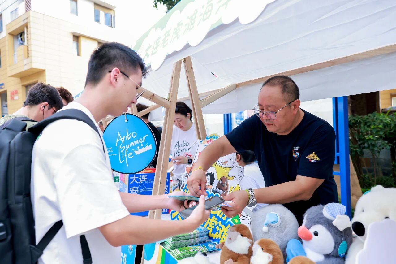 集團精心打造的文旅主題花車市集成為全場焦點。大連老虎灘海洋公園帶來海洋萌寵IP周邊,大連森林動物園帶來了原創(chuàng)周邊紀念品及特色印章,大連青旅國際旅行社提供精品線路咨詢,共同展現(xiàn)集團文旅資源的多元魅力,多位大連籍學(xué)子主動擔(dān)任“家鄉(xiāng)推薦官”,為大連熱情代言,吸引眾多學(xué)子駐足交流。
