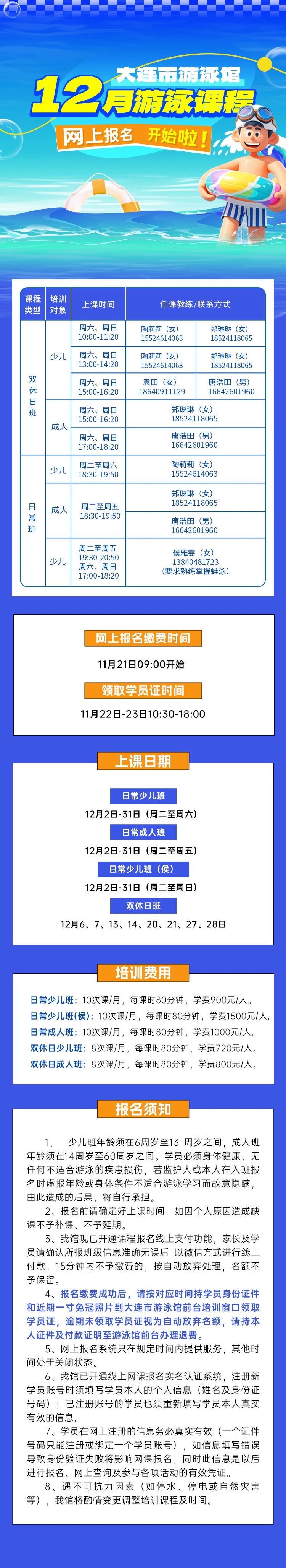 大連市游泳館十二月游泳課程網(wǎng)上報名開始啦!