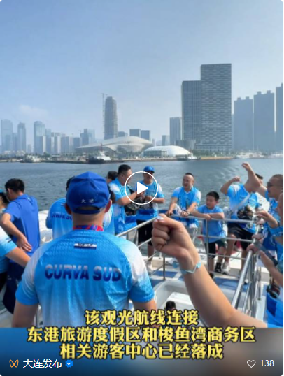 深圳小球迷崔忠義十分開(kāi)心?!昂I嫌未筮B”項(xiàng)目此次開(kāi)通的觀光航線,形成了獨(dú)特的“一灣兩岸”城市風(fēng)情海上畫(huà)廊,打造出一條全新的濱海旅游體驗(yàn)動(dòng)線。球迷朋友、市民游客可從東港“海上游大連”15庫(kù)碼頭登船,泛海而行,于海天之間感受大連這座濱海城市的現(xiàn)代活力與浪漫氣息。