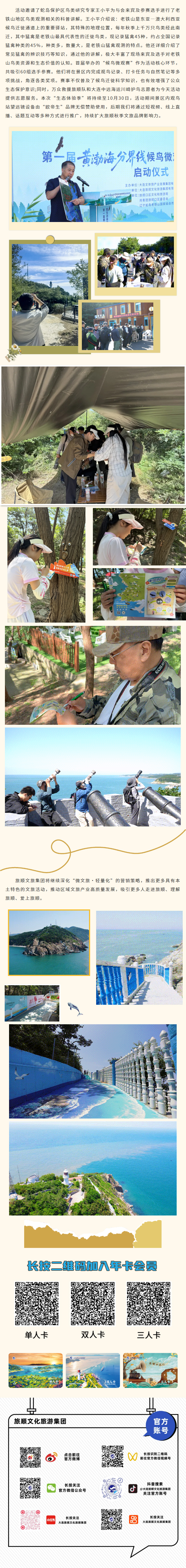 首屆黃渤海分界線候鳥微觀賽暨生態(tài)體驗季在旅順啟動,“微文旅·輕量化”模式引領(lǐng)旅順秋季文旅新體驗
