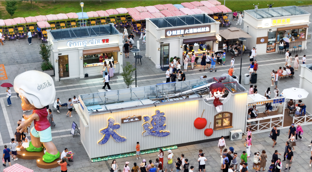 “東港·原點(diǎn)里”街區(qū),是潮玩夜生活的時尚新主場。300米的街區(qū),北側(cè)檔口、南側(cè)店鋪、中央步道、游艇港岸線觀景露臺布局精巧。漫步其中,點(diǎn)一杯咖啡,看游艇在波光中穿梭,落日余暉灑在身上,遠(yuǎn)處噴泉盛宴正酣,濱海不夜城的獨(dú)特魅力盡顯。街區(qū)負(fù)責(zé)人張譯丹介紹:“此次升級,還原了部分城市記憶場景,新增的大連城市文化展廳、闖關(guān)東主題雕塑等實(shí)物展陳,讓游客在游玩中感受城市的歷史脈絡(luò)?!?br />